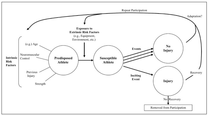 出處 Meeuwisse, W. H., Tyreman, H., Hagel, B., & Emery, C. (2007). A dynamic model of etiology in sport injury: the recursive nature of risk and causation. Clinical journal of sport medicine : official journal of the Canadian Academy of Sport Medicine, 17(3), 215–219. https://doi.org/10.1097/JSM.0b013e3180592a48