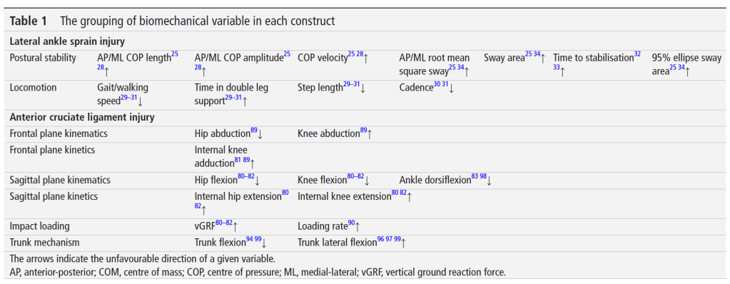 題目- Does prior concussion lead to biomechanical alterations associated with lateral ankle sprain and anterior cruciate ligament injury? A systematic review and meta-analysis (https://bjsm.bmj.com/content/early/2023/08/30/bjsports-2023-106980)
