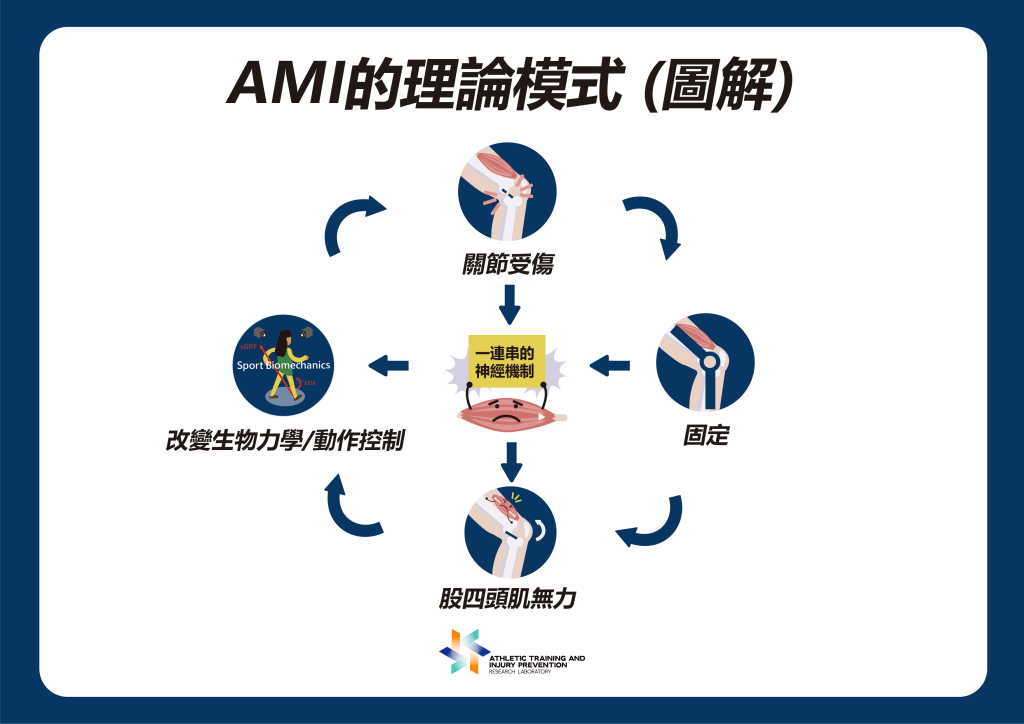 Harkey 等人 (2014) 的系統性文獻回顧 (systematic review) [3] 指出,傳統 ACL 術後復健策略過於強調股四頭肌的力量訓練,卻忽略了 AMI 對肌力抑制的影響。然而,AMI 的存在使得肌肉無法被完全徵招,進而大大削弱復健訓練的效果。
